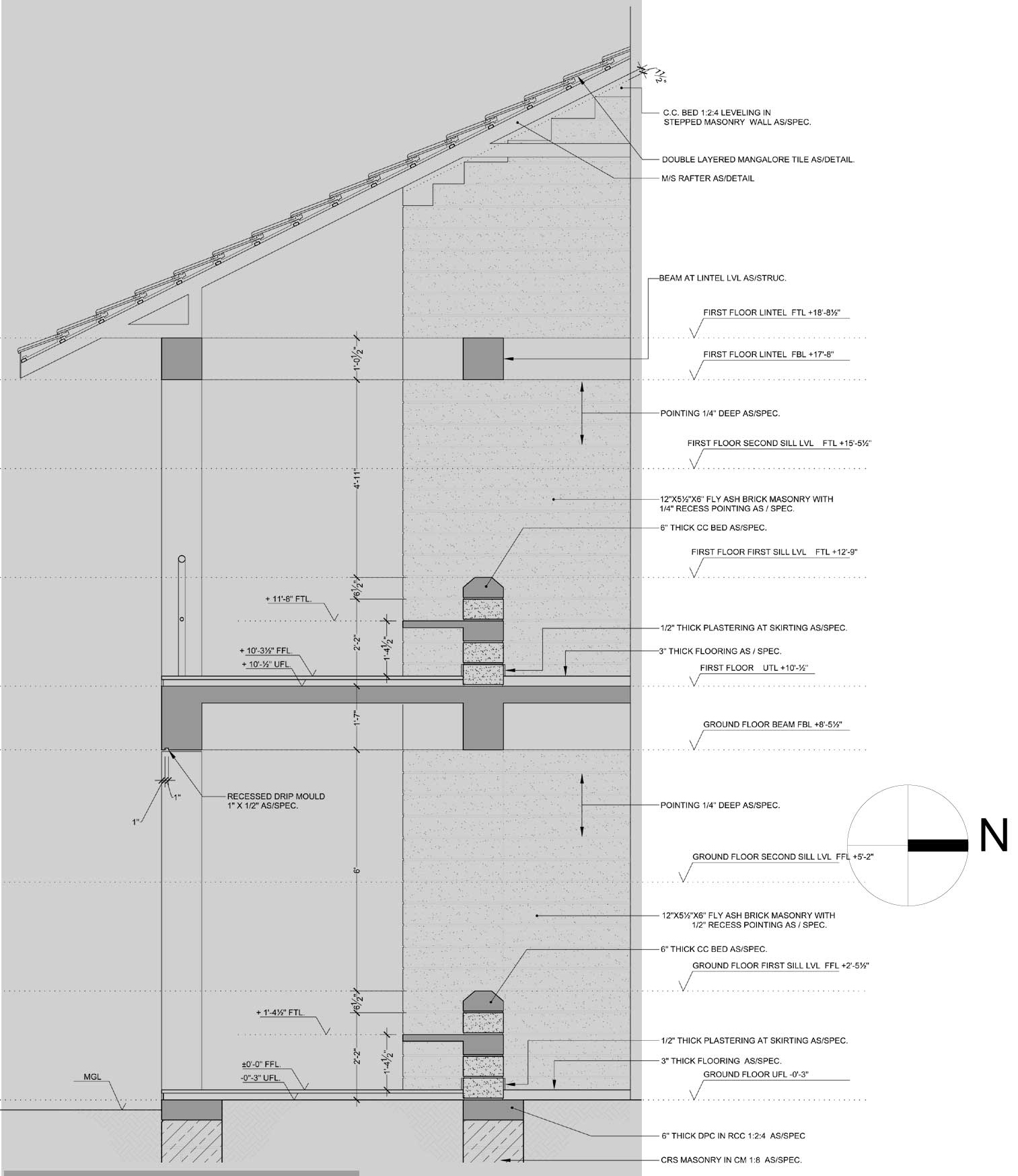 Structurally, the framework is a composite of RCC coupled with load-bearing fly ash brick masonry walls.