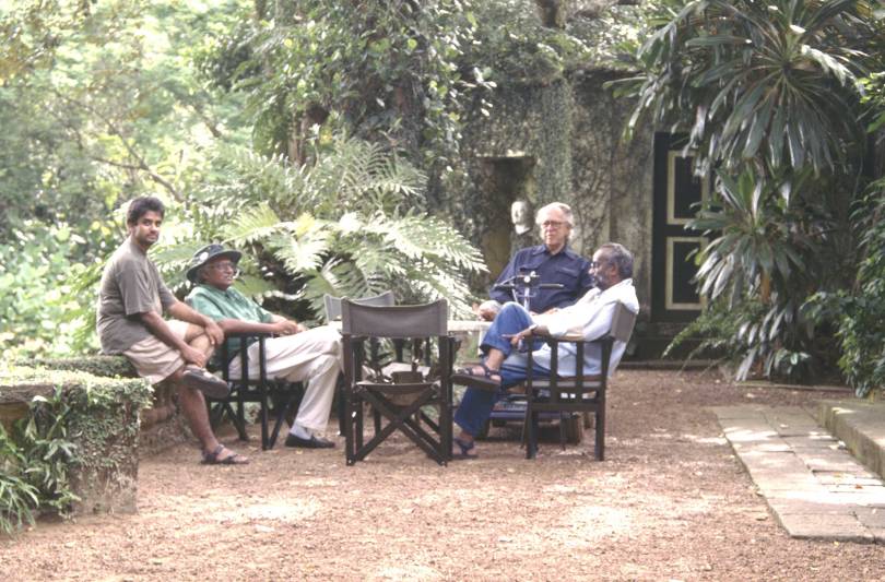 01 October 24, 2014 2816 × 1856 Remembering Bawa . . . Bawa with Channa Daswatte, Ismeth-Raheem and Anjalendran at Lunuganga. [Robson, 1997]