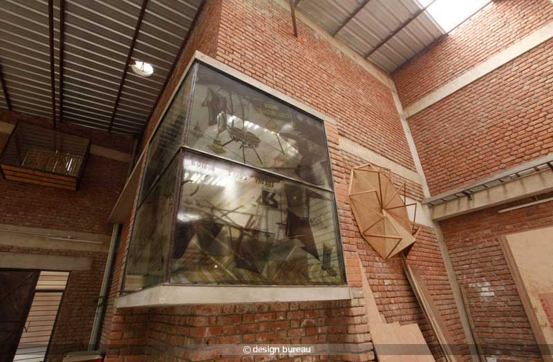 01 November 22, 2014 800 × 525 Wrap Art & Design Factory: Design Bureau The viewing balcony drawing visual connections from the stairway to the factory space.