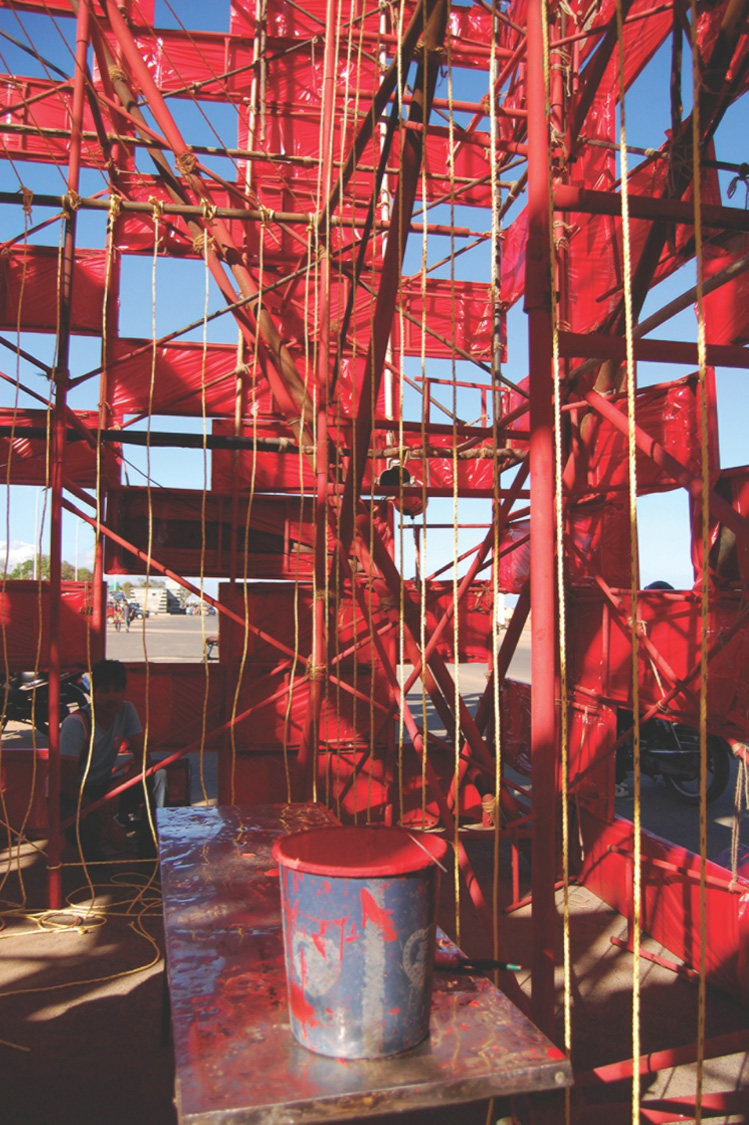 Stack-It-Up-13 November 24, 2014 749 × 1125 Stack It Up: Triple O Studio & ArchitectureRED The skin made of fabric being put in place. Strings were suspended from the scaffolding, on which people could tie the Helium Balloons, as seen below.