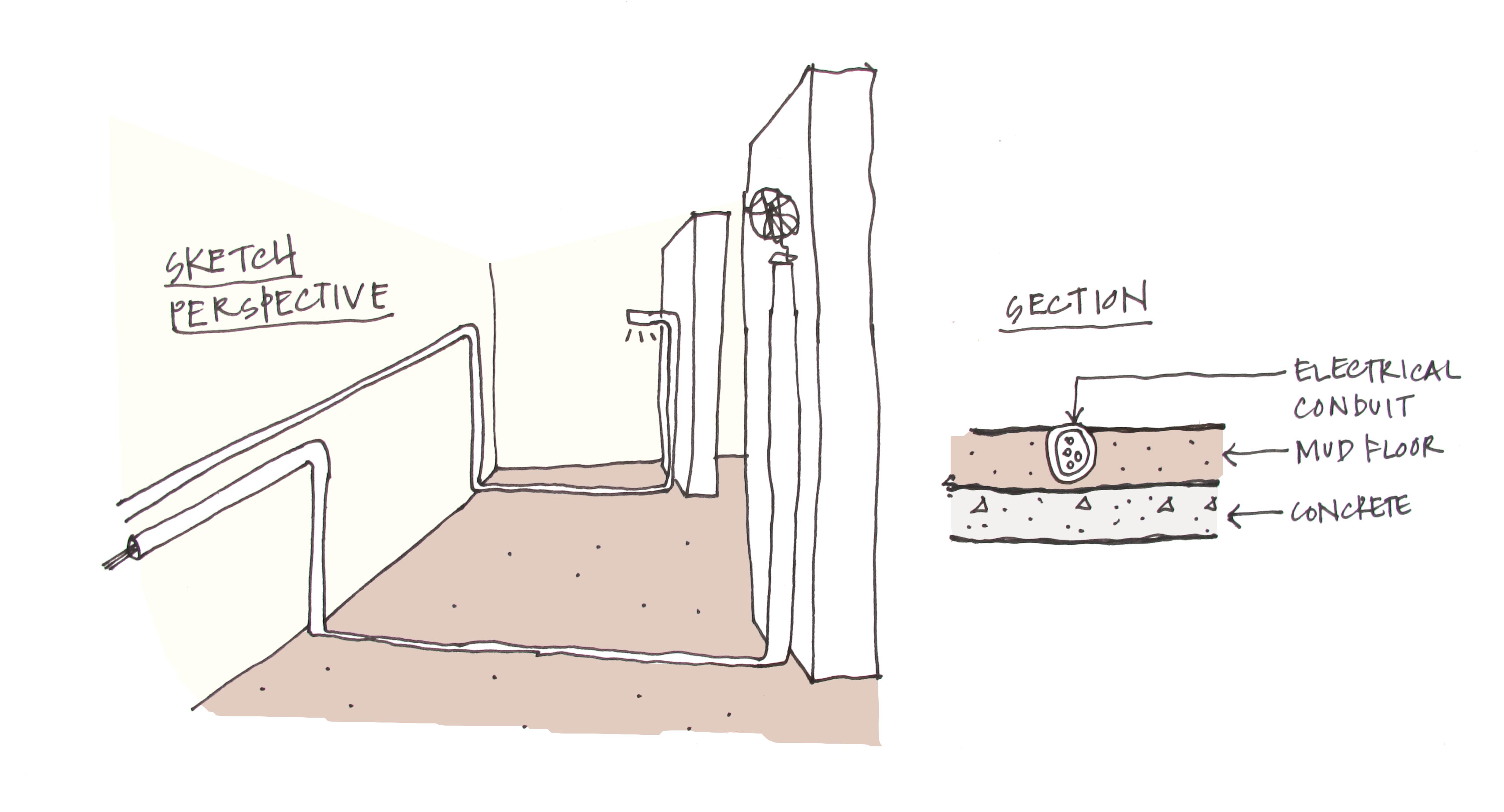 sketch1 July 27, 2015 3411 × 1842 Young Weavers’ Training Centre: Young Citizens Sketch Perspective. The conduits are embedded within the flooring, so it creates tracks across the floor.