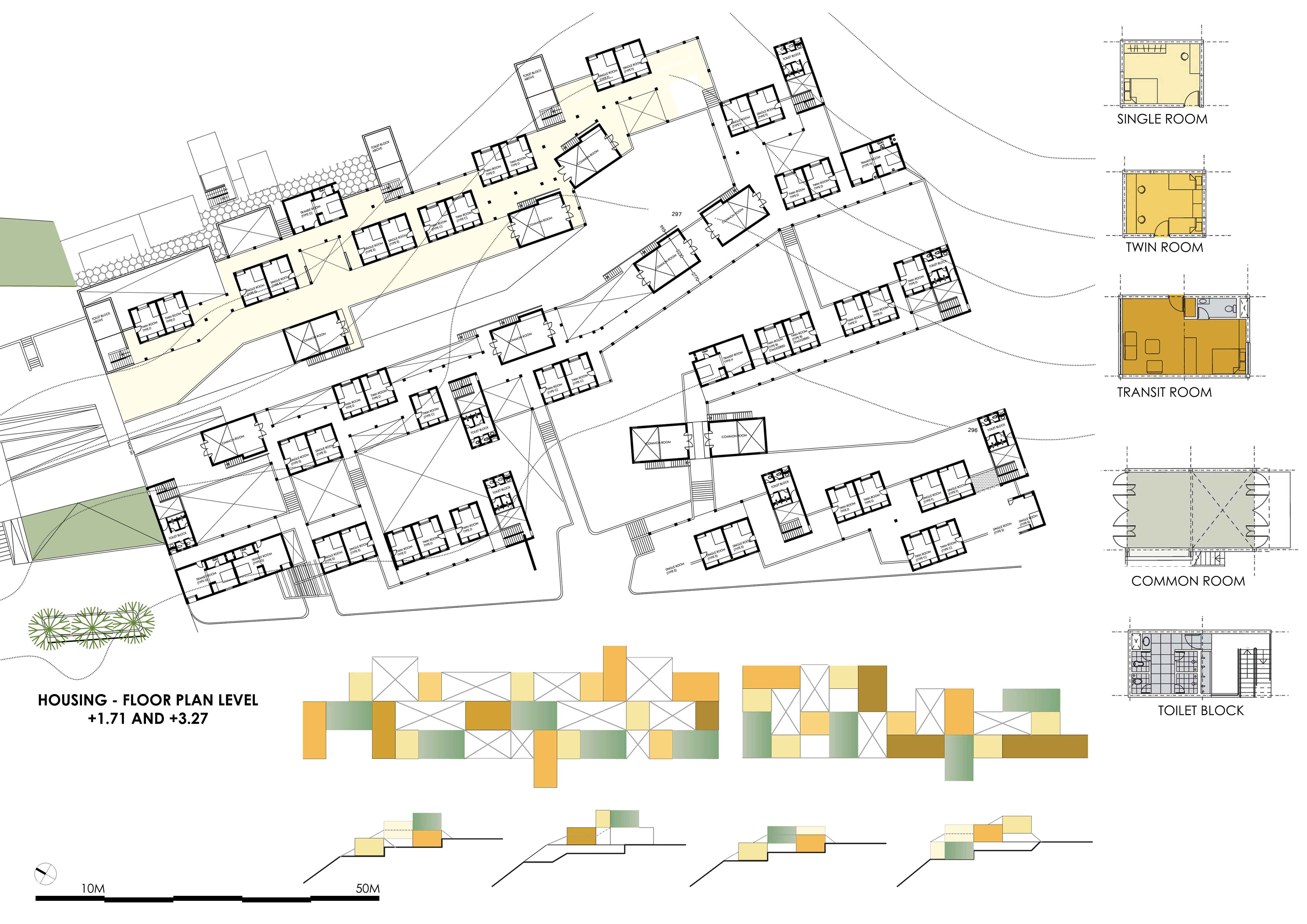 The non-design attribute is in the social semiotics embedded in the layout of the housing. Throughout the scheme, apparent multiplicities of ‘non-programmatics’ implicitly animate movement in different directions and in-between nodes.