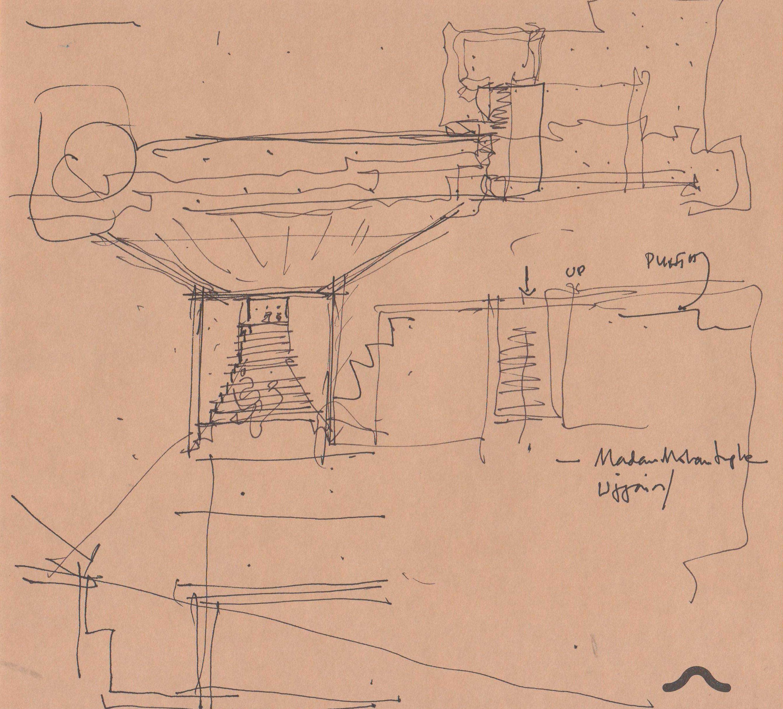 A13 February 27, 2017 2691 × 2437 Indigo Architects: Mausami and Uday Andhare “I drew this view from Ujjain, while designing the innards of experience in the building” – Drawn by Uday Andhare.