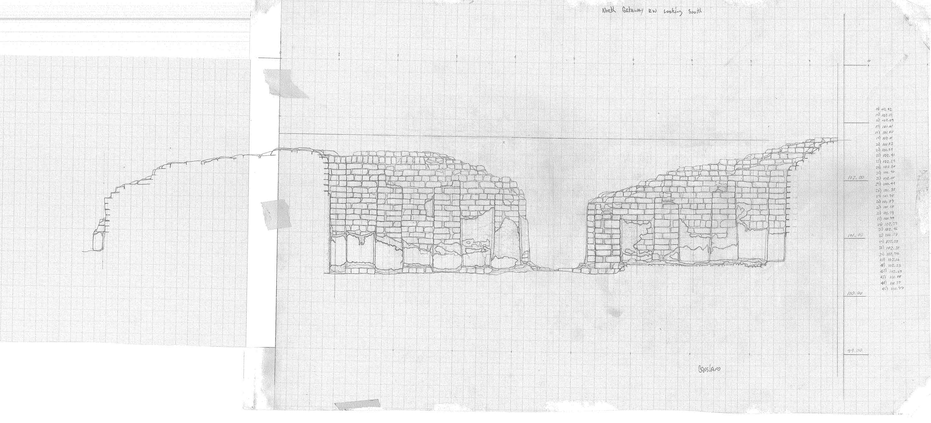 A2 November 1, 2018 2960 × 1344 DRAWING TO FIND OUT [05]: SHUBHRA RAJE Observation drawing of the North gate main elevation_ drawn by PYFIA expedition