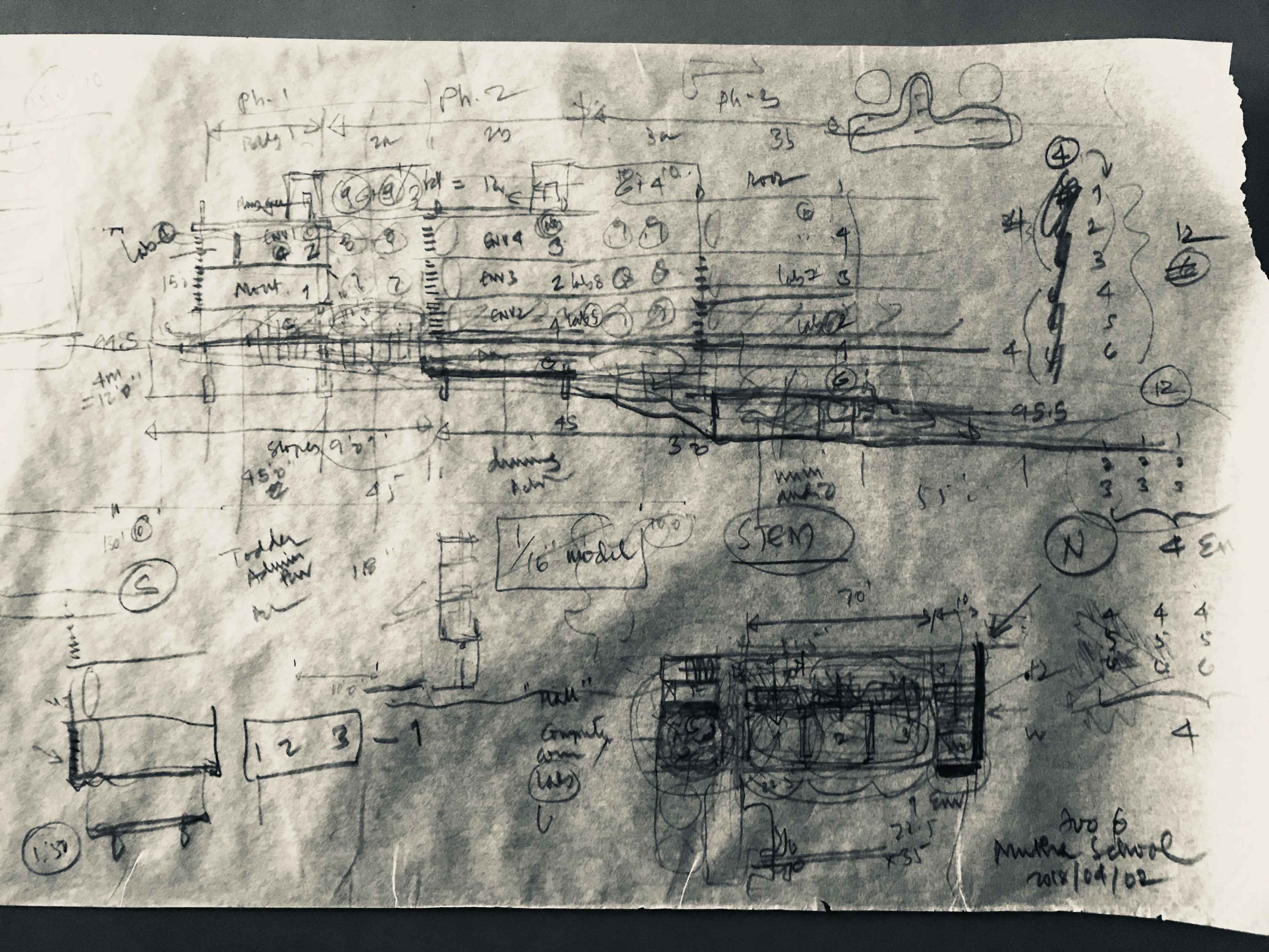 E13 November 1, 2018 3427 × 2570 DRAWING TO FIND OUT [05]: SHUBHRA RAJE Mutha school_ sectional and plan organization testing_ drawn by Shubhra Raje