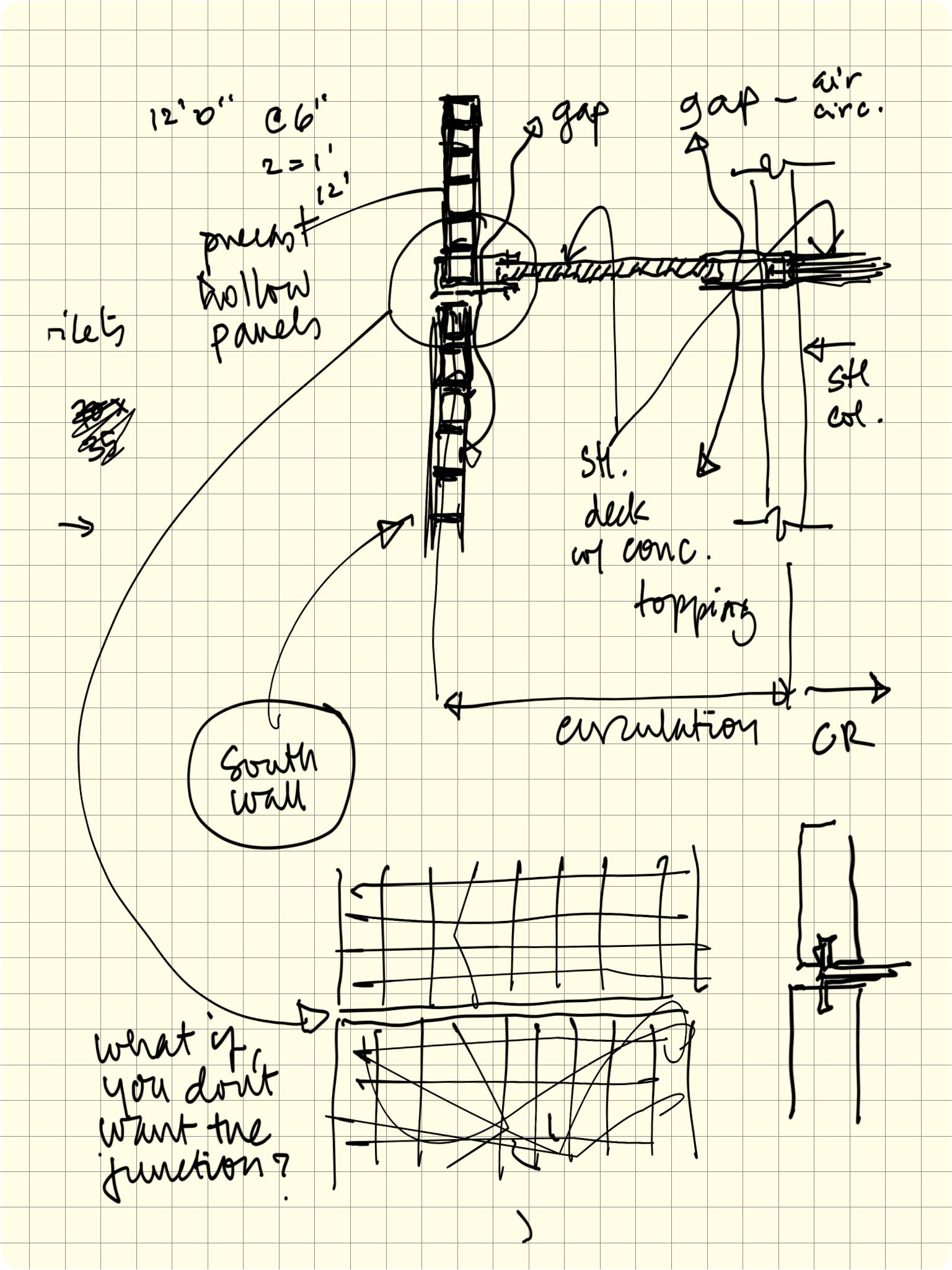 E38 November 1, 2018 1536 × 2048 DRAWING TO FIND OUT [05]: SHUBHRA RAJE Mutha school_ west façade junction detail_ drawn by Shubhra Raje