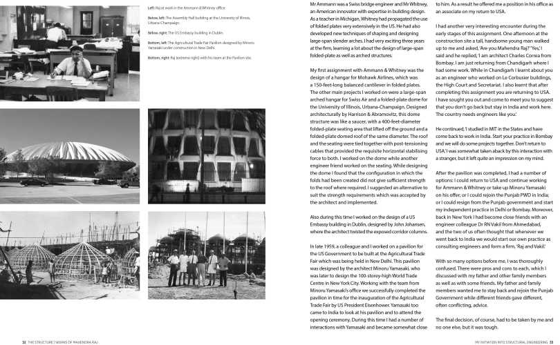 32-33 February 5, 2019 4435 × 2741 Book: The Structure: Works of Mahendra Raj Page Spread: My initiation to Structural Engineering.