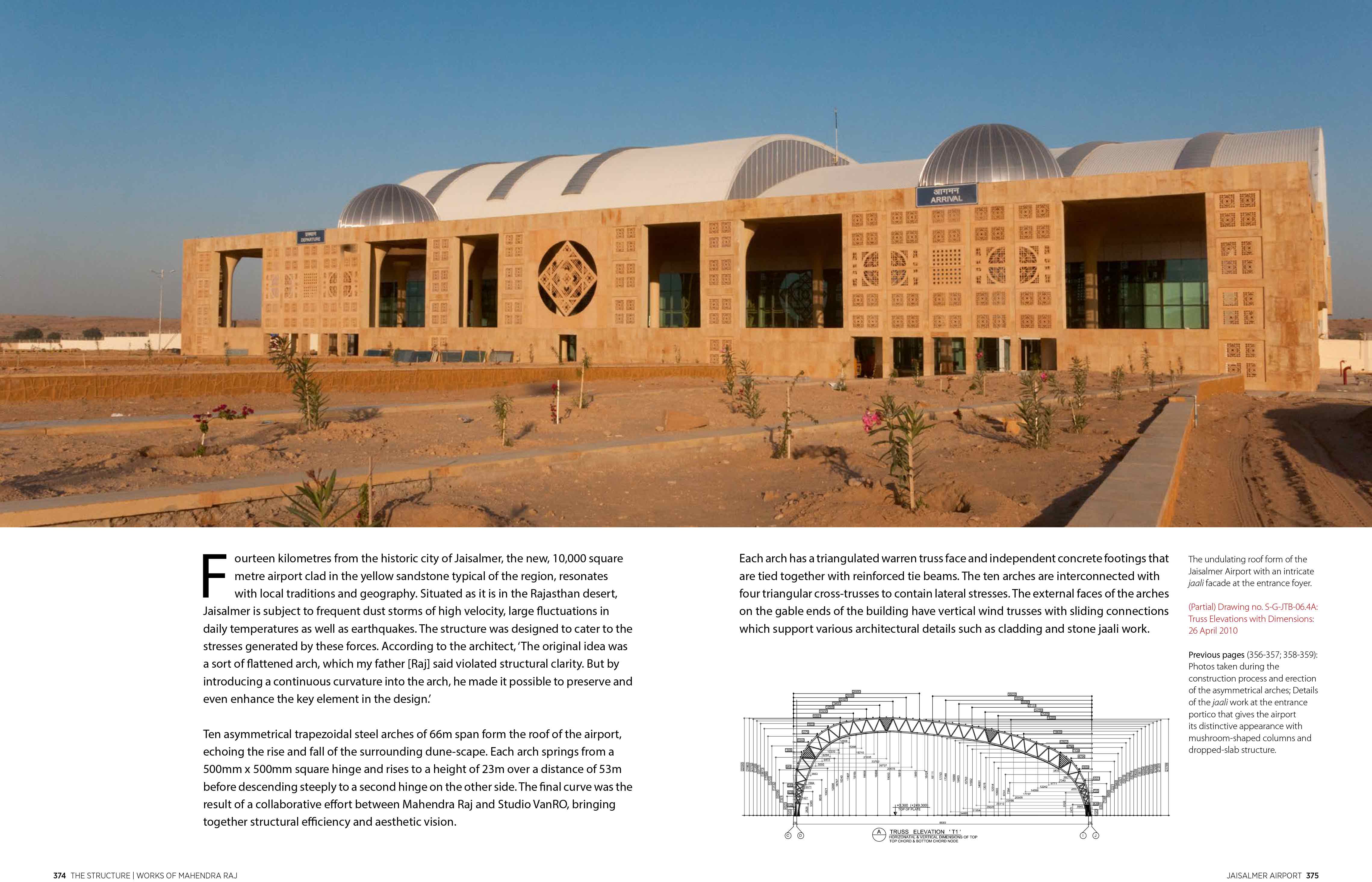 374-375 February 6, 2019 4558 × 2930 Book: The Structure: Works of Mahendra Raj Page Spread: Jaisalmer Airport, Jaisalmer, 2013.