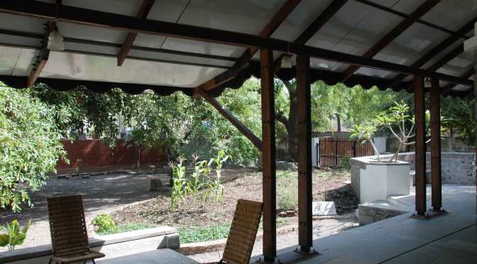 Imagine this square shifted in by 3-4 metres! It would have been a loss. So, we decided to build over the existing plinth and foundation. The original roof was pitched, and it continues to be the same with brick walls to support it. This property never had an opening/entry gate onto the road since 1934, but the council allowed us to build on the street. The property was granted directly to our family by the British – like a direct handover of land rights. In that sense, it was good that we decided to retain the character of this place.