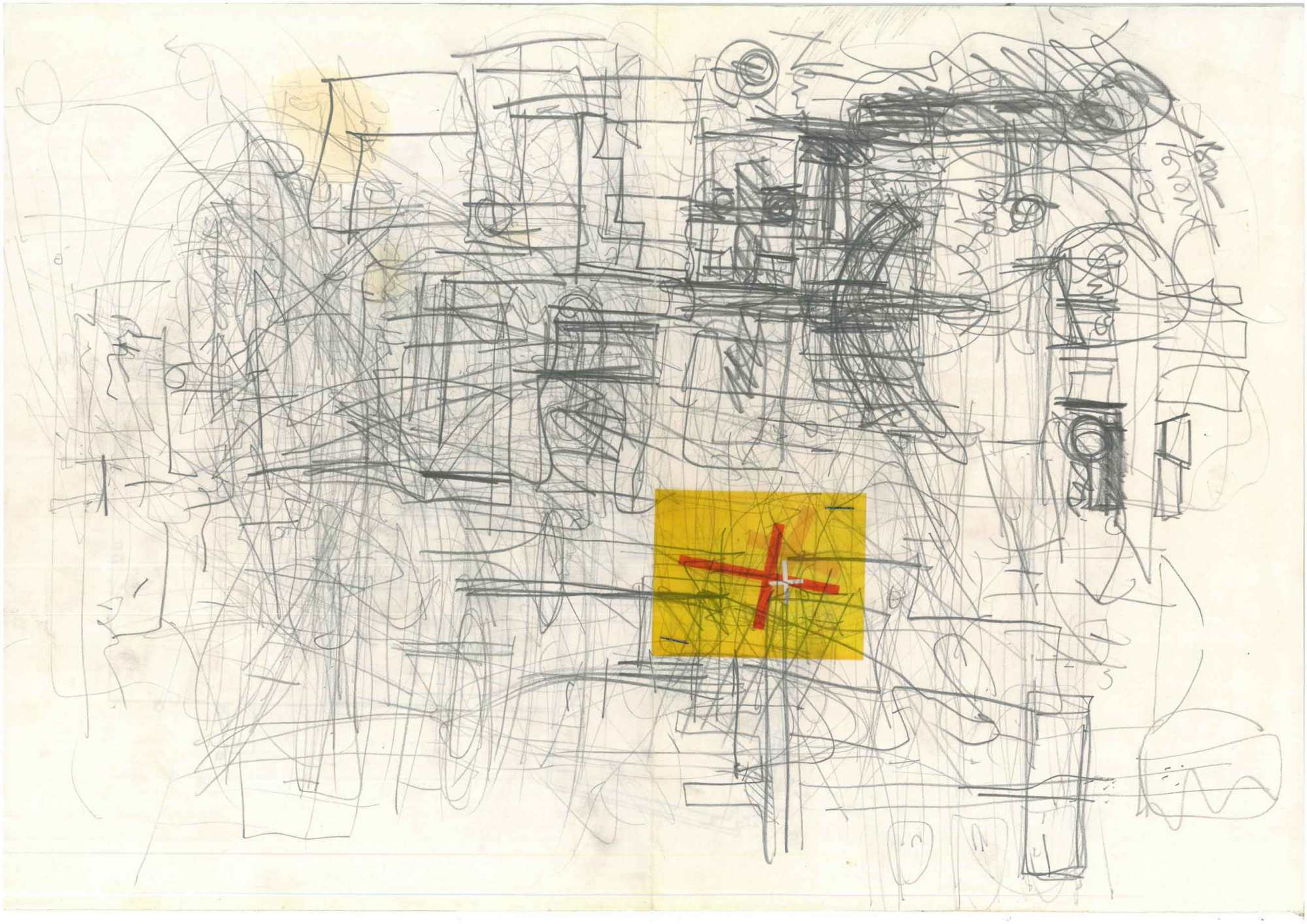 The continuous activity of drawing is inherent to Percy’s manner of movement through design. His drawings portray an impatient search, a rigorous scribbling to disentangle his thinking process; which may trigger from a haphazard set of thoughts, a painting’s image or even arbitrary marks on paper. Beginning with a diagram of relationships in a project, then moving towards the energy of drawing and redrawing over the layers of the site, programme, scale, landscape; the design emerges. It is this synergy of drawing processes composed of bold strokes on paper, colour and form exercises and revisiting of paintings; that extract defining architectural elements of space and form. The work of art chosen as a starting point is constantly used as a tool to realign all layers while working.