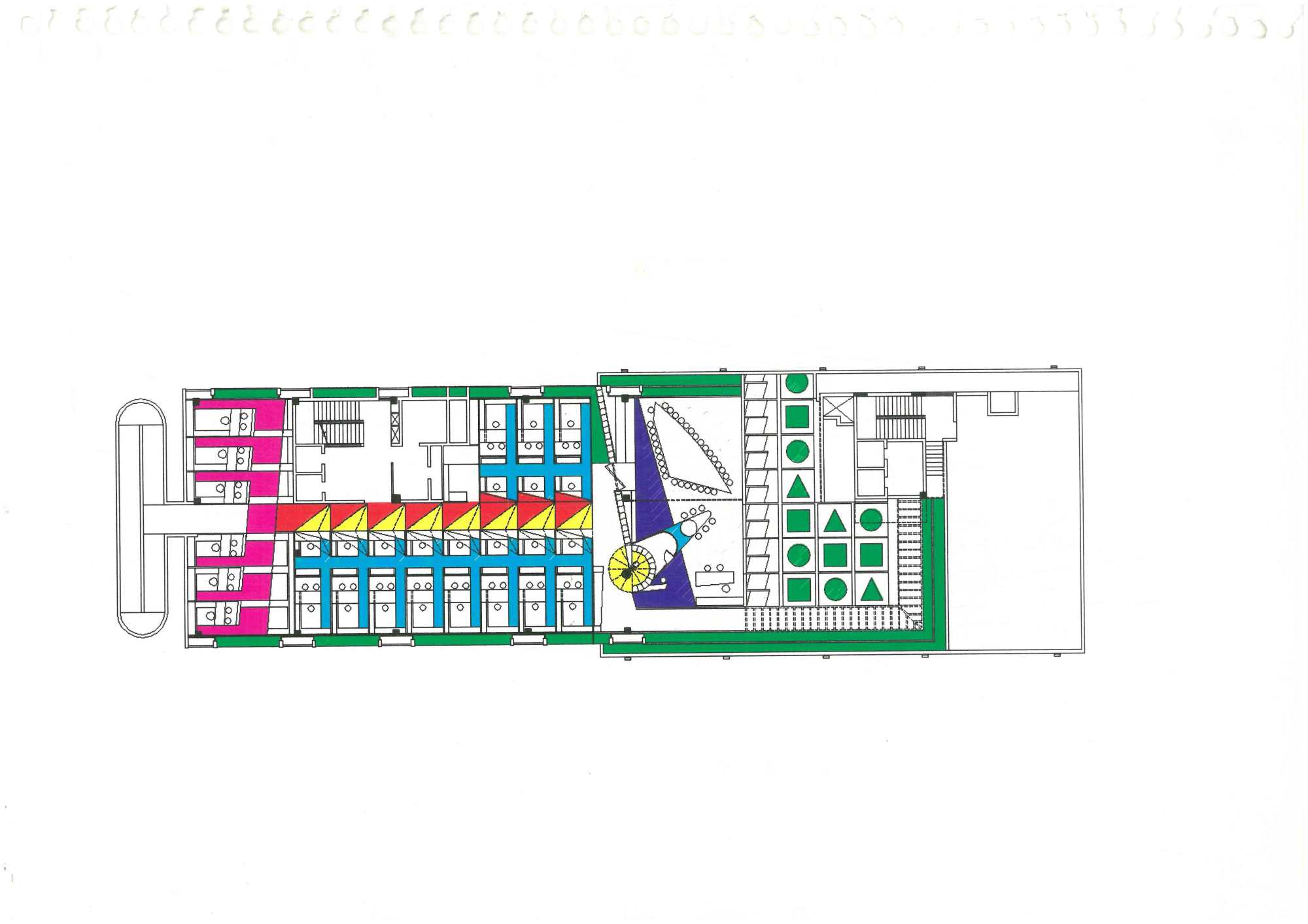 Russian constructivist paintings and artists like Malevich have had a great influence on Percy’s work. His process of drawing generally begins with a painting as a point of departure, which can be interrogated, inhabited and imagined in many ways. Over time and repetition, the drawings assume an intuitive and layered understanding of space – sometimes hidden and sometimes revealed in the iterative process. It is an intuitive process. It involves deciphering and decoding various aspects of the painting/graphic including its geometry, colour and intention. The subsequent explorations translate a two-dimensional field into a reinterpreted three-dimensional space. The intrinsic activity of drawing creates abstractions with a strong form, colour and geometry defining the evocative experience for the architecture to come. The gaze, if held longer may translate proportions and dynamics of the drawing into an architectural form or delve deeper into its artistic expression. Giving every drawing the potential to either remain as artwork or become a building, depending on what the eye wants to see.