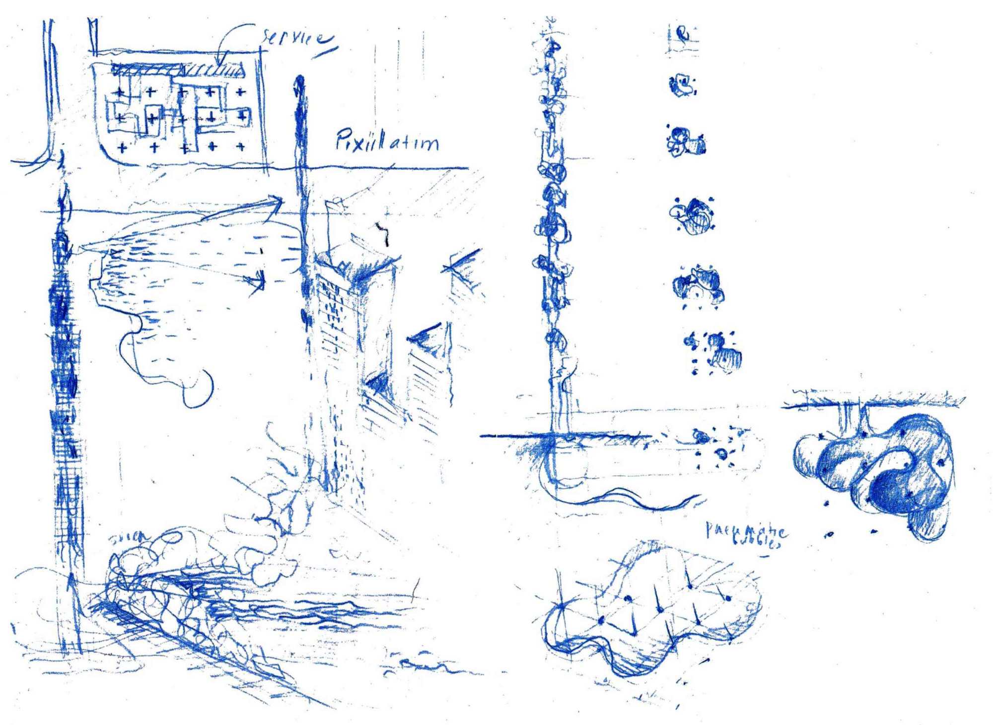 Q: What is the nature of your design and thought process? How does hand drawing as a tool participate in the design process?
