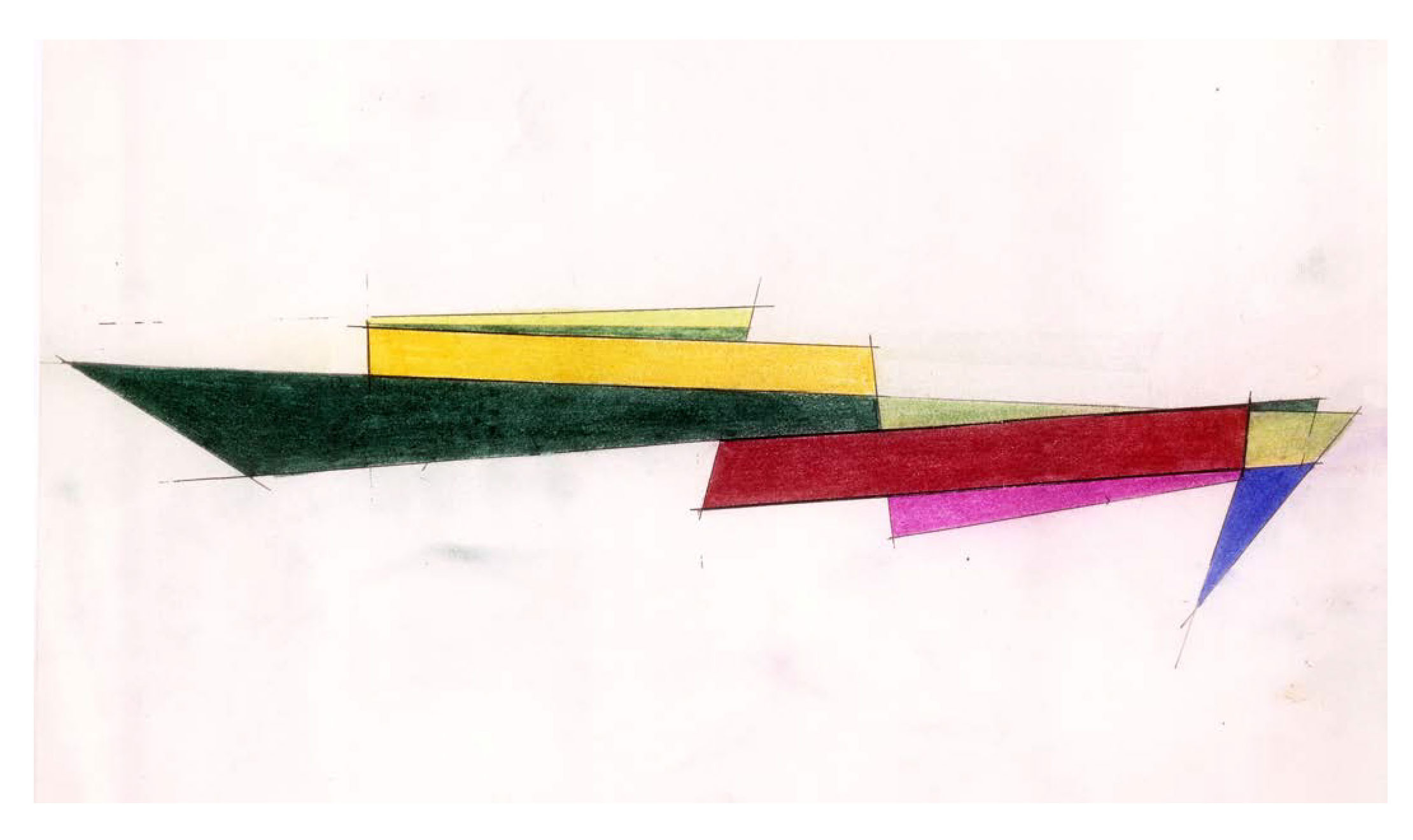Russian constructivist paintings and artists like Malevich have had a great influence on Percy’s work. His process of drawing generally begins with a painting as a point of departure, which can be interrogated, inhabited and imagined in many ways. Over time and repetition, the drawings assume an intuitive and layered understanding of space – sometimes hidden and sometimes revealed in the iterative process. It is an intuitive process. It involves deciphering and decoding various aspects of the painting/graphic including its geometry, colour and intention. The subsequent explorations translate a two-dimensional field into a reinterpreted three-dimensional space. The intrinsic activity of drawing creates abstractions with a strong form, colour and geometry defining the evocative experience for the architecture to come. The gaze, if held longer may translate proportions and dynamics of the drawing into an architectural form or delve deeper into its artistic expression. Giving every drawing the potential to either remain as artwork or become a building, depending on what the eye wants to see.