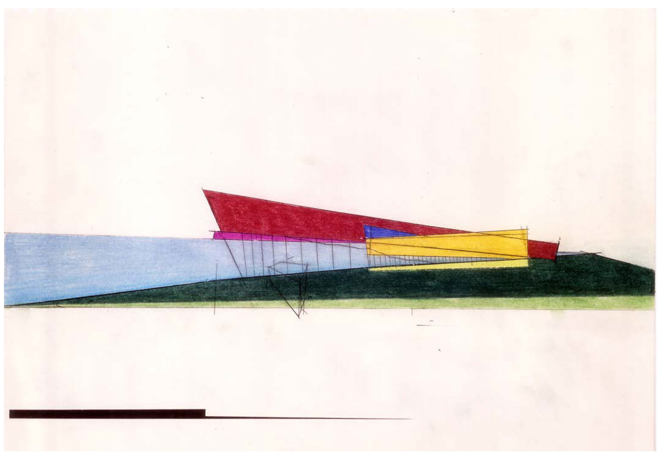 The continuous activity of drawing is inherent to Percy’s manner of movement through design. His drawings portray an impatient search, a rigorous scribbling to disentangle his thinking process; which may trigger from a haphazard set of thoughts, a painting’s image or even arbitrary marks on paper. Beginning with a diagram of relationships in a project, then moving towards the energy of drawing and redrawing over the layers of the site, programme, scale, landscape; the design emerges. It is this synergy of drawing processes composed of bold strokes on paper, colour and form exercises and revisiting of paintings; that extract defining architectural elements of space and form. The work of art chosen as a starting point is constantly used as a tool to realign all layers while working.