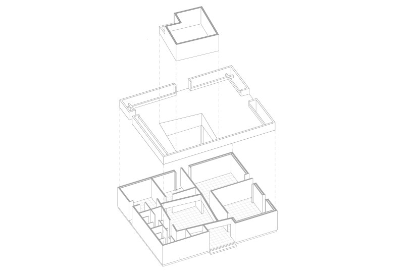 December 17, 2019 5400 × 3666 Exploring Emergent Architecture by Studio Advaita An exploded axonometric investigating proportion and position of the central space with respect to the collective layout