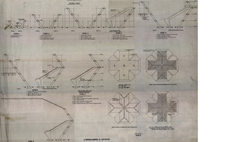 These are the stages of construction again, because every alternate floor which was a tie also was pre-stressed. And so how that was done and how the elongation of the cables would happen was staged and described in one of the drawings.