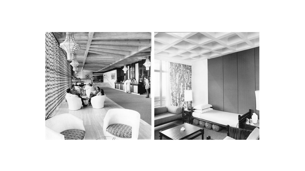 Built in 1969 in New Delhi, the Akbar Hotel’s main hotel block required a close-spaced column and beam framing configuration that the architect had to carry down into the public areas on the ground level. On Raj’s suggestion, however, these areas were reconceived as large column-free spaces achieved by introducing a transfer girder in a transitional floor above. The resultant large span column-free lobby, now a commonplace in most hotels, created a new spatial possibility. The major load of the nine floors of rooms above was now taken by this transitional flow, craftily webbed slender ribs allowed a large span to then be handled with minimal ribbed depths. The depth of the final ribs were not so much because the load was taken over by the transitional floor and also on the insistence of the architect, he wanted the columns then further to be pulled out of the structure and be expressed outside. So the web of the ribs helped him sort of bring it closer together and pull it out of the building.