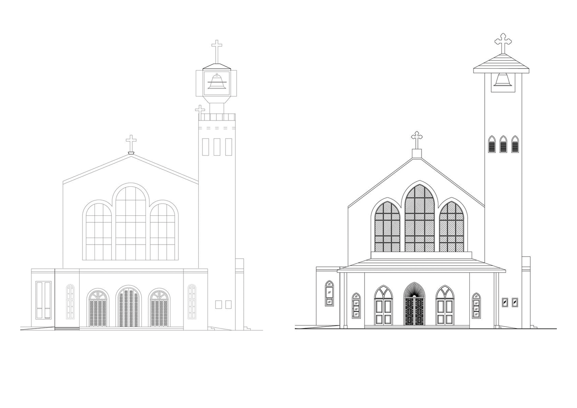 South (front) elevation: Before and After restoration February 8, 2021 2000 × 1414 ST JOHN THE BAPTIST CHURCH: VIKAS DILAWARI ARCHITECTS South (front) elevation: Before and After restoration