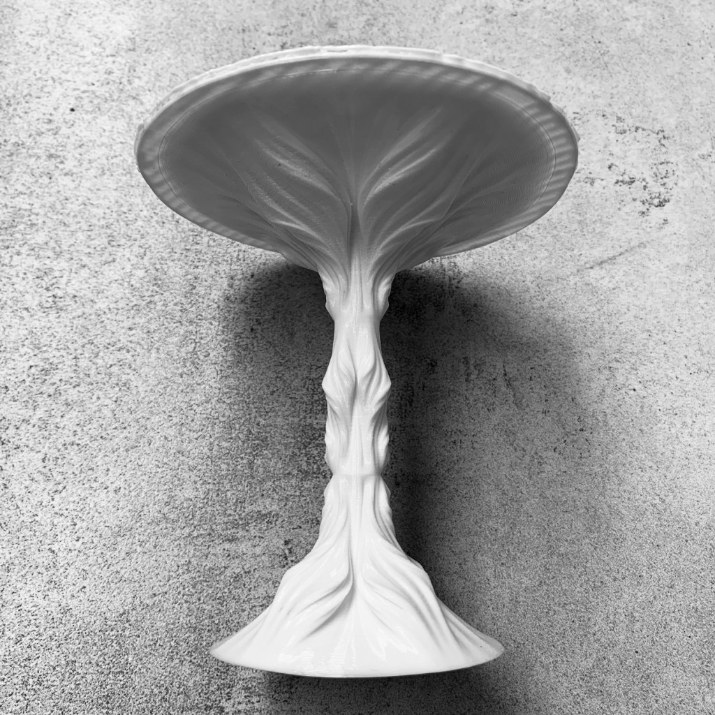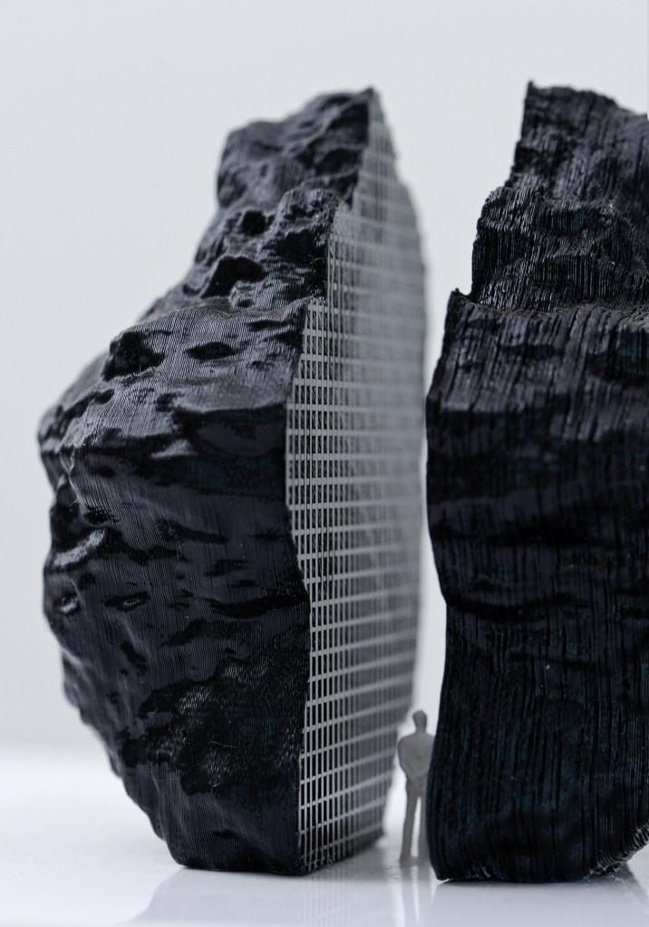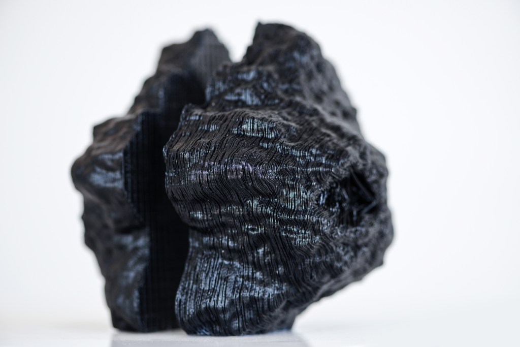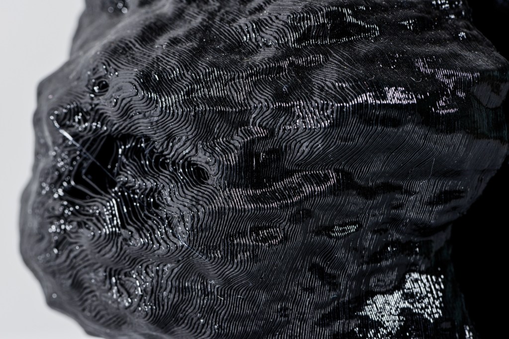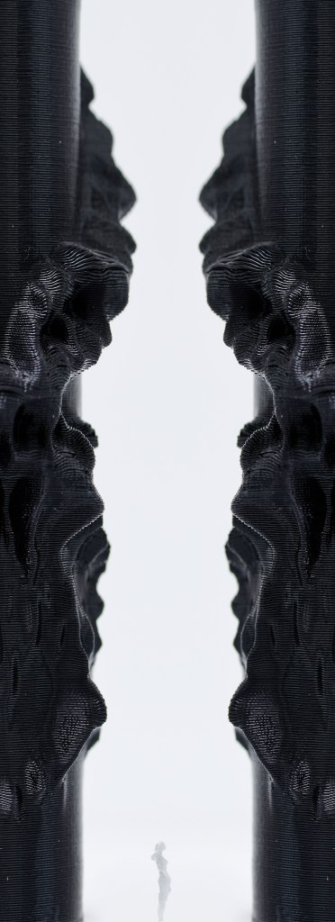 ‘Black’ an exploration in tectonics with undulating smooth surfaces in contrast with the white background.