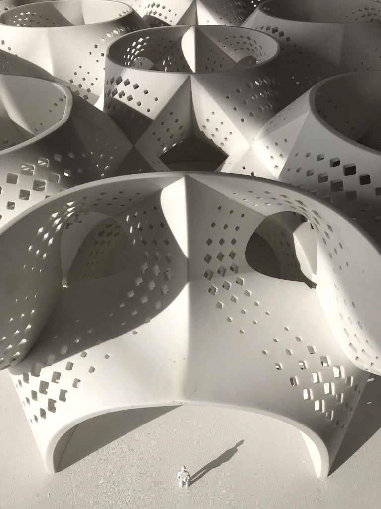 Firstly, the idea of exploring three-dimensionality in the virtual realm is to test design in real time and obtain feedback with modification at every step of design development. But this feedback, at times, can be deceptive and unreliable. Nuru’s explorations through physical objects is a process that involves a diverse range of materials and techniques of making that range from CNC routing to 3D printing that use complex polymers such as PLA. Apart from testing prototypes in varied scales, the studio often works in the 1:1 scale with actual materials to test an evolved idea of space under natural forces such as gravity as to design stable environments. The philosophy of the practice is embedded in learning from natural systems.