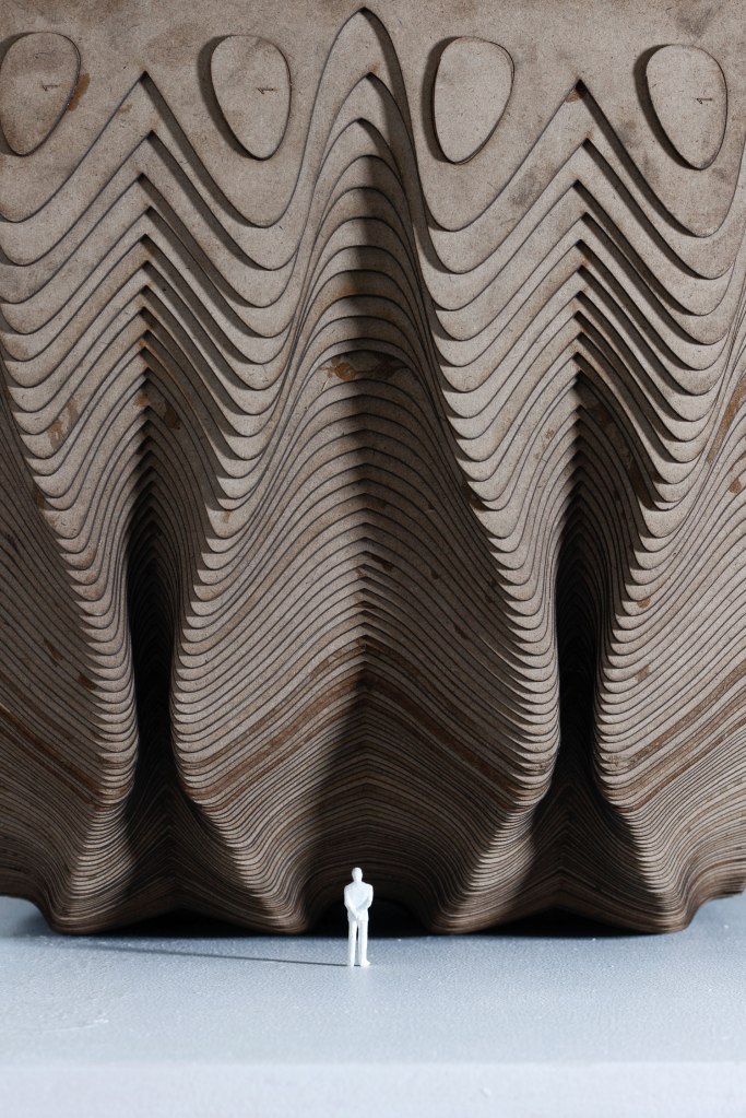 ‘Cube’ metamorphosis – from a solid, orthogonal surface to the fluid forms.