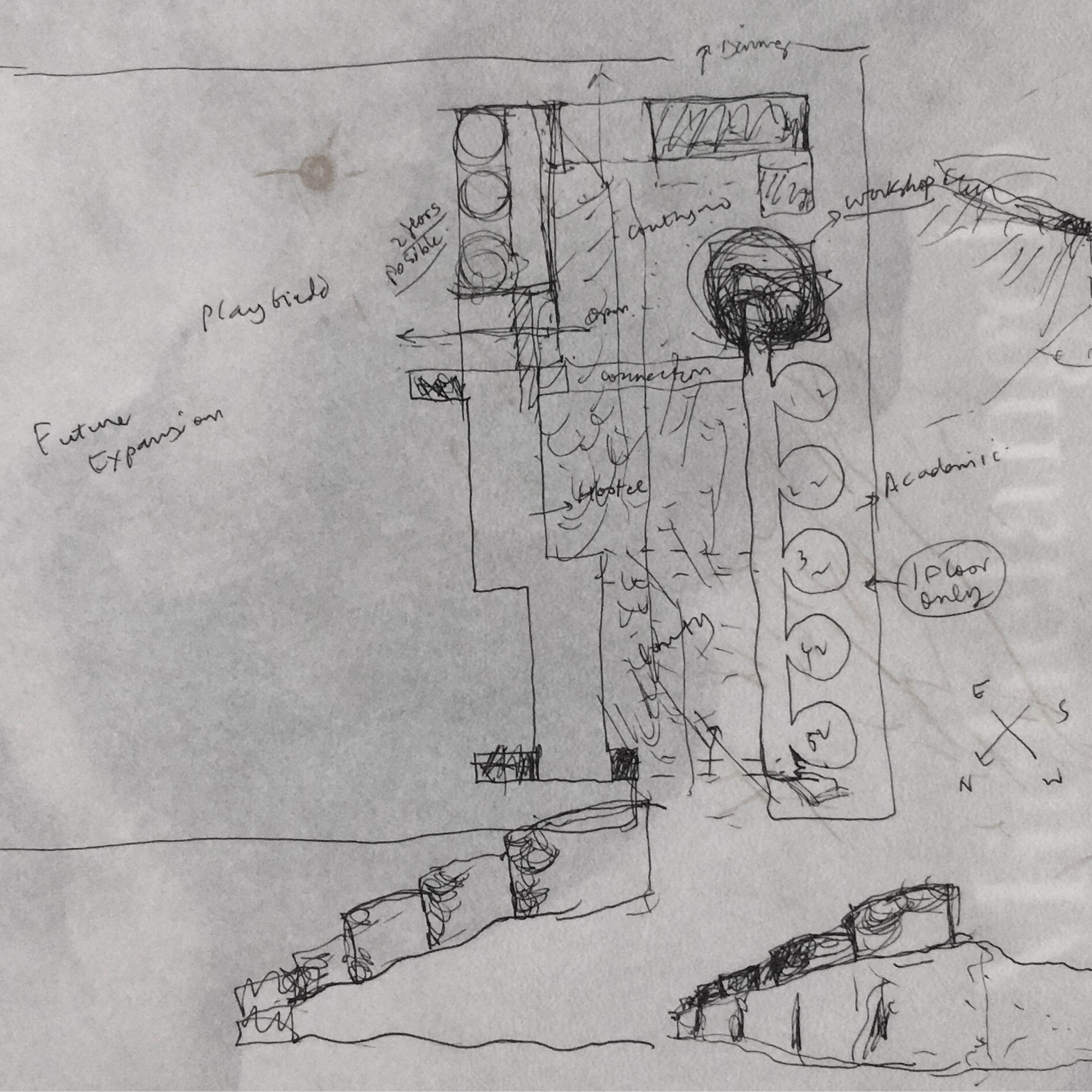 The initial ideas of the project are developed from an intuitive understanding of the location and not from rational analysis, but from a personal relationship established with the place – visits, sketches, speculative drawings, stories, conversations with people. Later the project goes through series of iterations, shaping slowly with the feedback of users, experts, and our closer study of the programme and place.