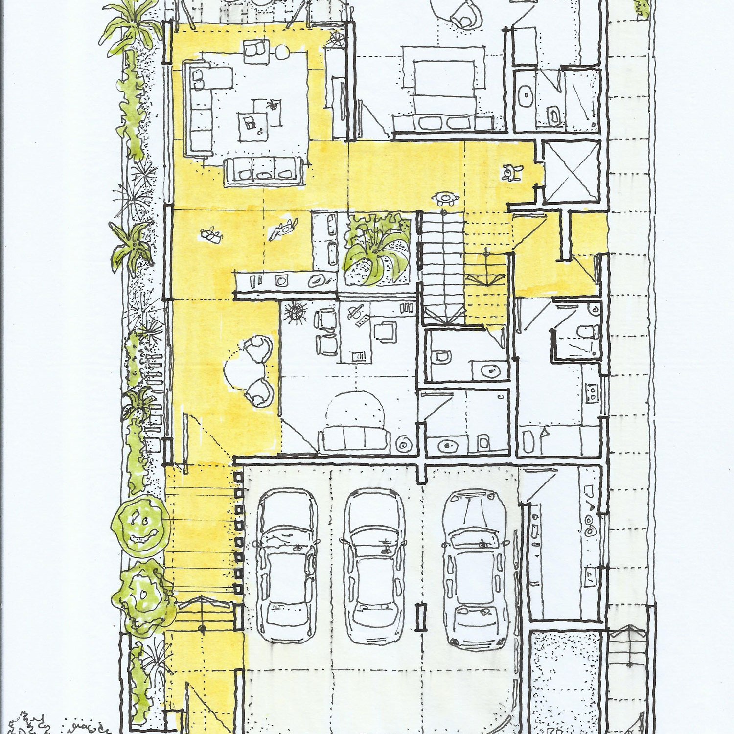 PJ: I love to ponder overan idea, sketching over and over till I get certain clarity of the direction I wish to take or clarity in the spatial arrangement.