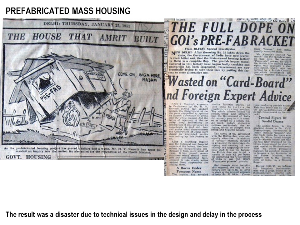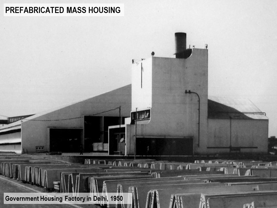 But then, the same person once appointed in the Government of India, leads to certain kinds of decisions that really do not work. So he was able to operate at a certain scale but he was not able to operate because he was asked to actually come up with a policy for housing. He comes up with a variety of policies, he actually does Faridabad and Gandhi Dham as refugee settlements. In Faridabad, (I have read about it, I still have to get more information), he actually tries a primitive form of participatory planning where all the refugees are actually building their houses and also building some of the civic centers and markets. But his earlier obsession with pre-fabrication takes over and he proposes a major project on prefab housing, the Government Housing Factory in Delhi, which ends up in a sheer disaster because of the fact that machineries could not reach on time, there were huge technical problems, a huge scandal and then he had to leave India and he goes back to, I guess the UK, where then he goes on to write a book that we all refer to, on tropical housing.