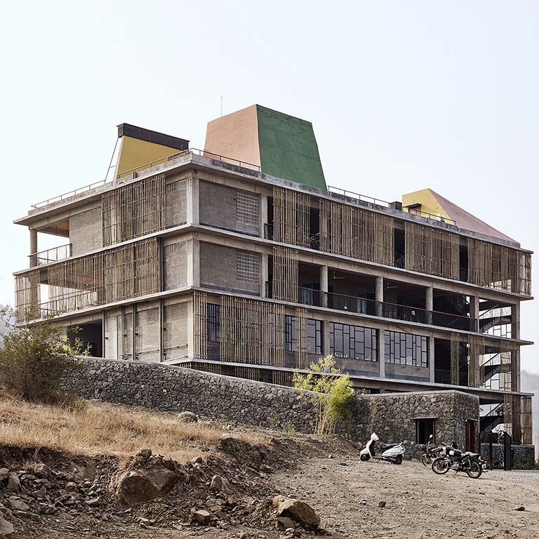 Avasara Academy is a good example of that process. Early in the conceptual stages we worked with Pratik Raval from Transsolar on the climate engineering systems because that was where his contribution could make the most impact. In later phases we worked with Hemali Samant and local farmers to develop the landscape and agriculture for the campus, Malene Bach from Copenhagen developed the colors using local pigments, Rameshwar Bhadhwa and his craftsmen created the mosaic floors and paving from reclaimed stone, Punamchand Suthar produced the furniture using timber and industrially salvaged thread, Malekar Mama designed the well and the prototypes for the bamboo screens. The list goes on and on. For me, it was proof of concept that an open ended process that was driven by deep collaboration and shared values could work on an incredibly restricted budget and at the scale of massive public architecture.