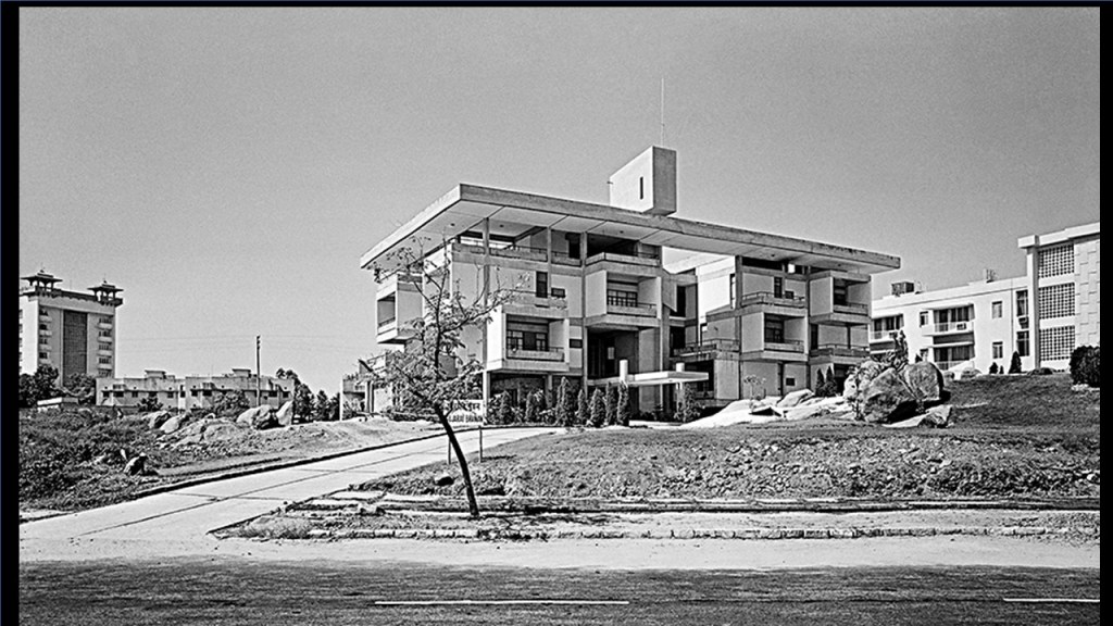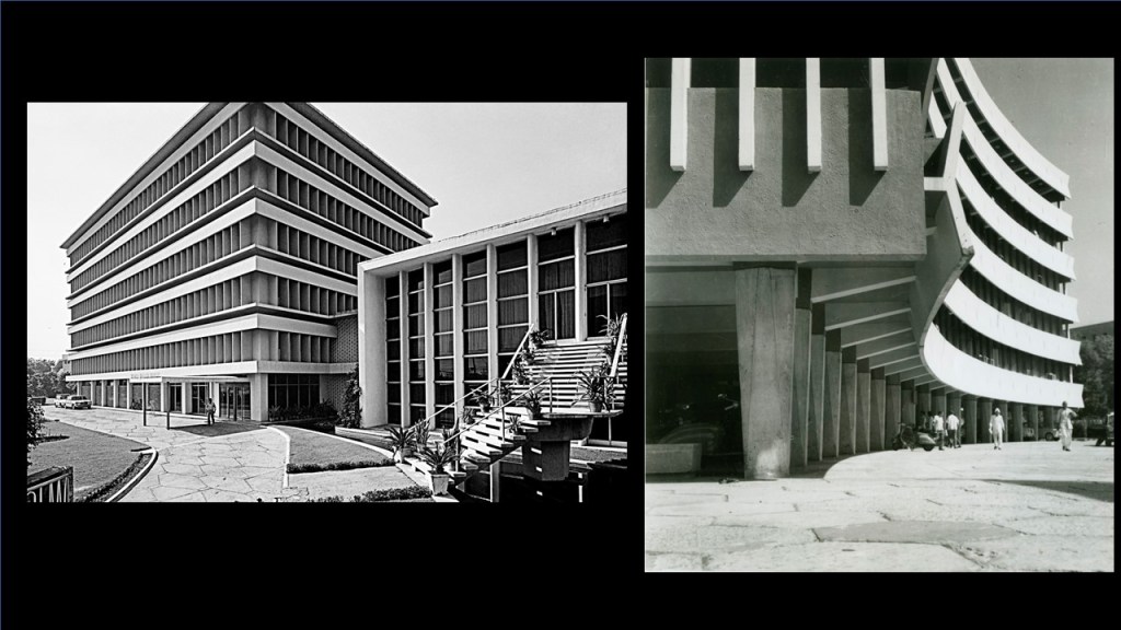 [20:05] Coming now to the other modern architecture that was happening in Delhi at the time. This is Kanvinde, Gujarat Bhavan in the 1960s (referring to image 30); and on the left, you will see Ashoka Hotel done by E.B Doctor from Bombay.