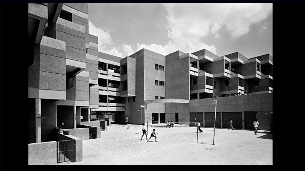 This is Yamuna Apartments by The Design Group, which is Ranjit Sabikhi and Ajoy Choudhury (referring to image 46). Tara Apartments, a housing Charles had done, which is not very far from here, also had a vocabulary – not similar, but trying to do very dense housing in interesting forms, some of which were related to some of the typologies which they had seen in North Indian cities, older cities.