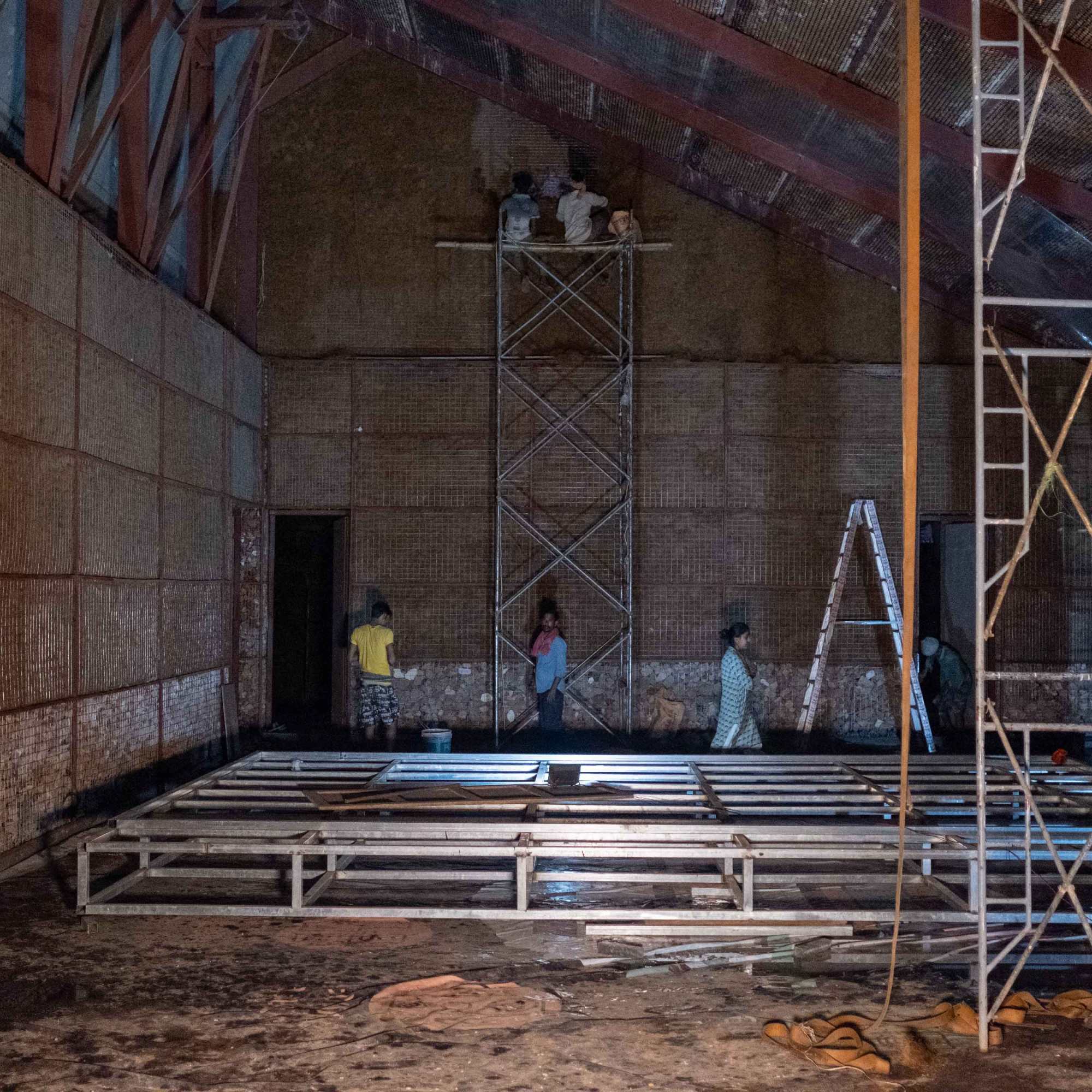 I am finding today that we were able to actually use that idea and really put it to absolute 100 percent practice in the pavilion that we created for Kochi. It is amazing because for ten years we had been talking about it and it was silent, and suddenly you get an opportunity where you can actually use it. We were able to use construction debris from buildings that were coming down just next door to the site in Kochi. It was amazing. It was great on energy, beautifully insulated thermally; we were able to bring down temperatures, we were able to actually not abuse the land. Especially, with the whole idea that if the structure is temporary, what happens to the footings? — We had no footings. It was a floating structure. So, when they dismantled it, they had the site back.