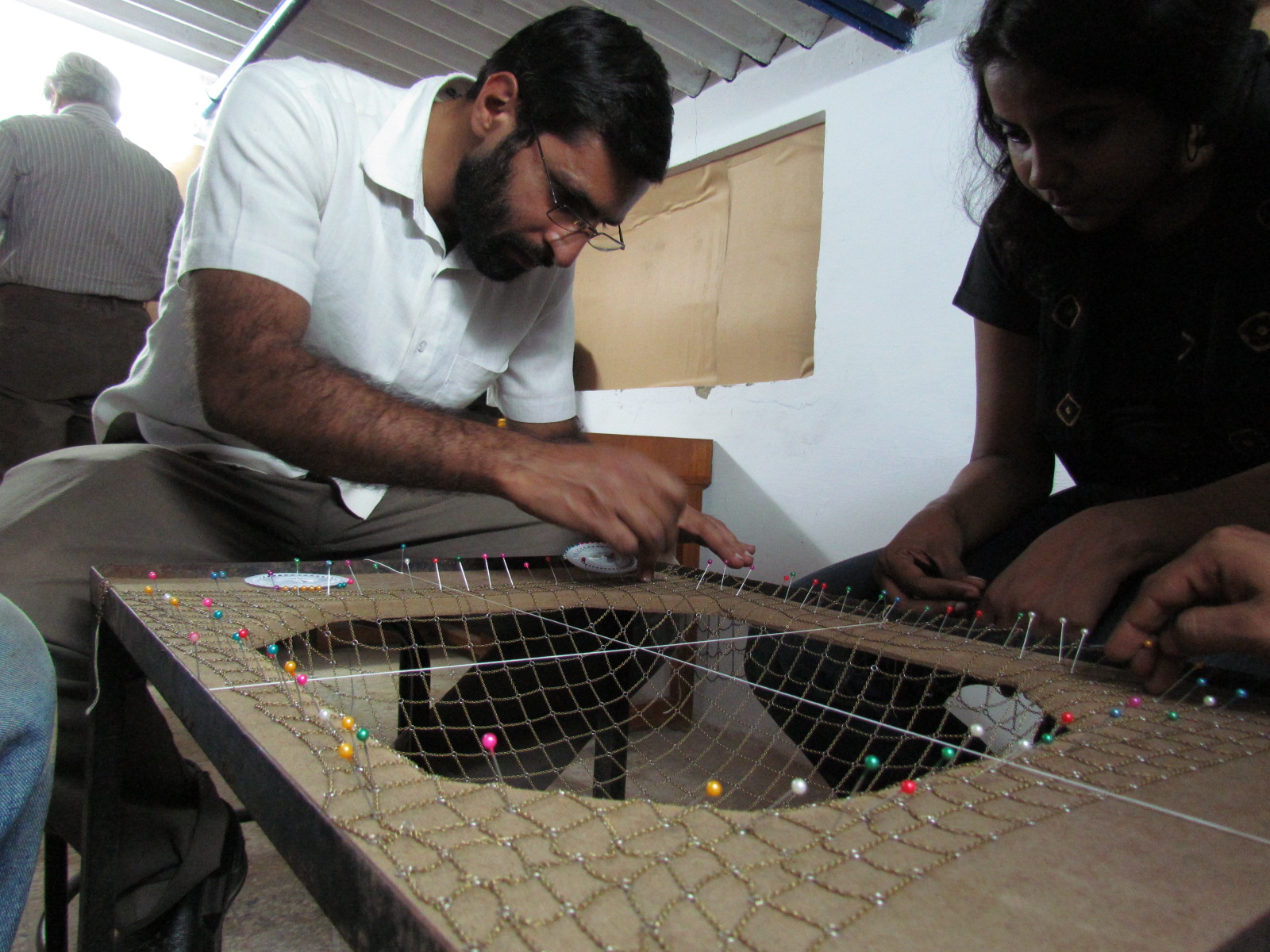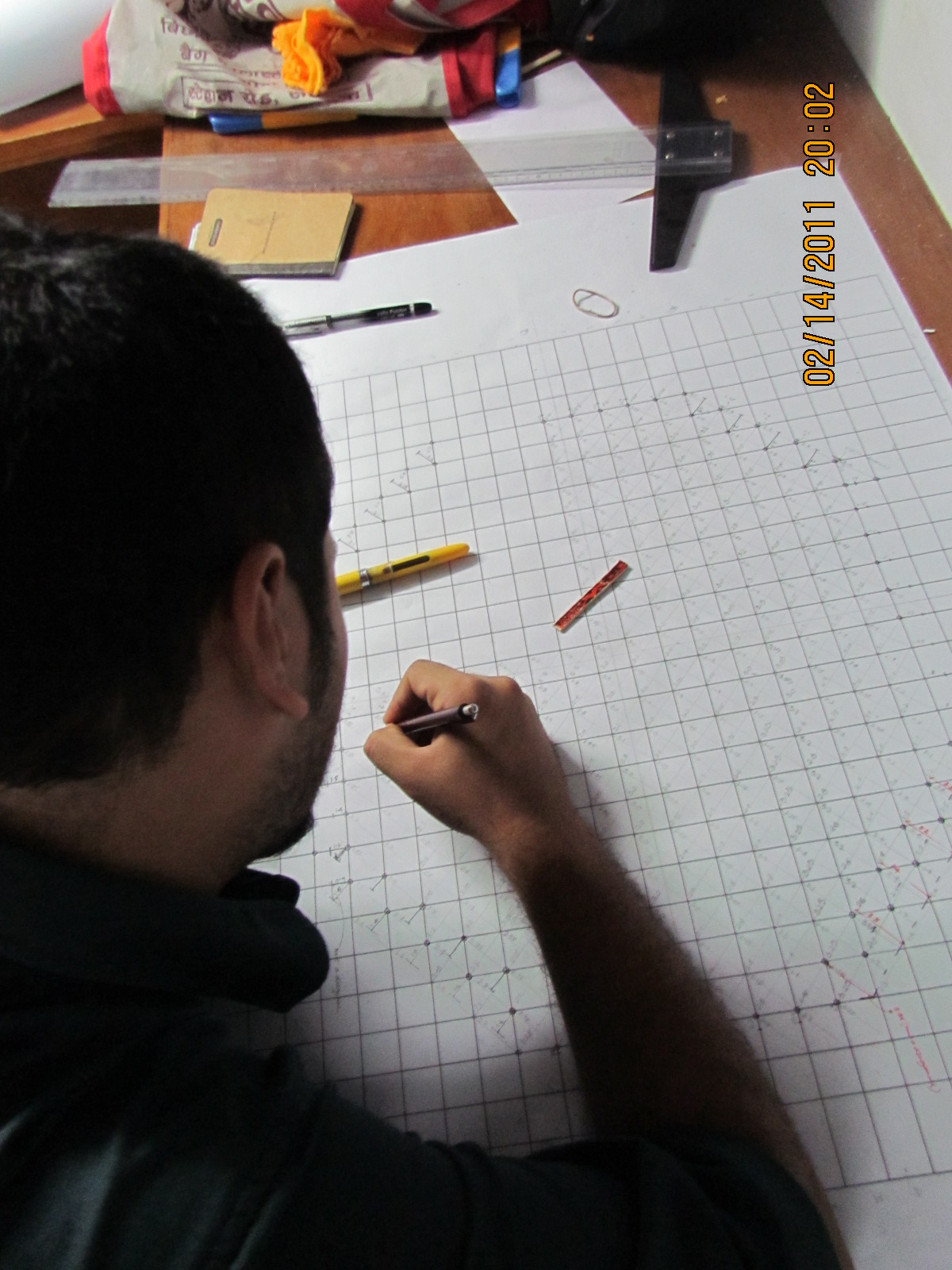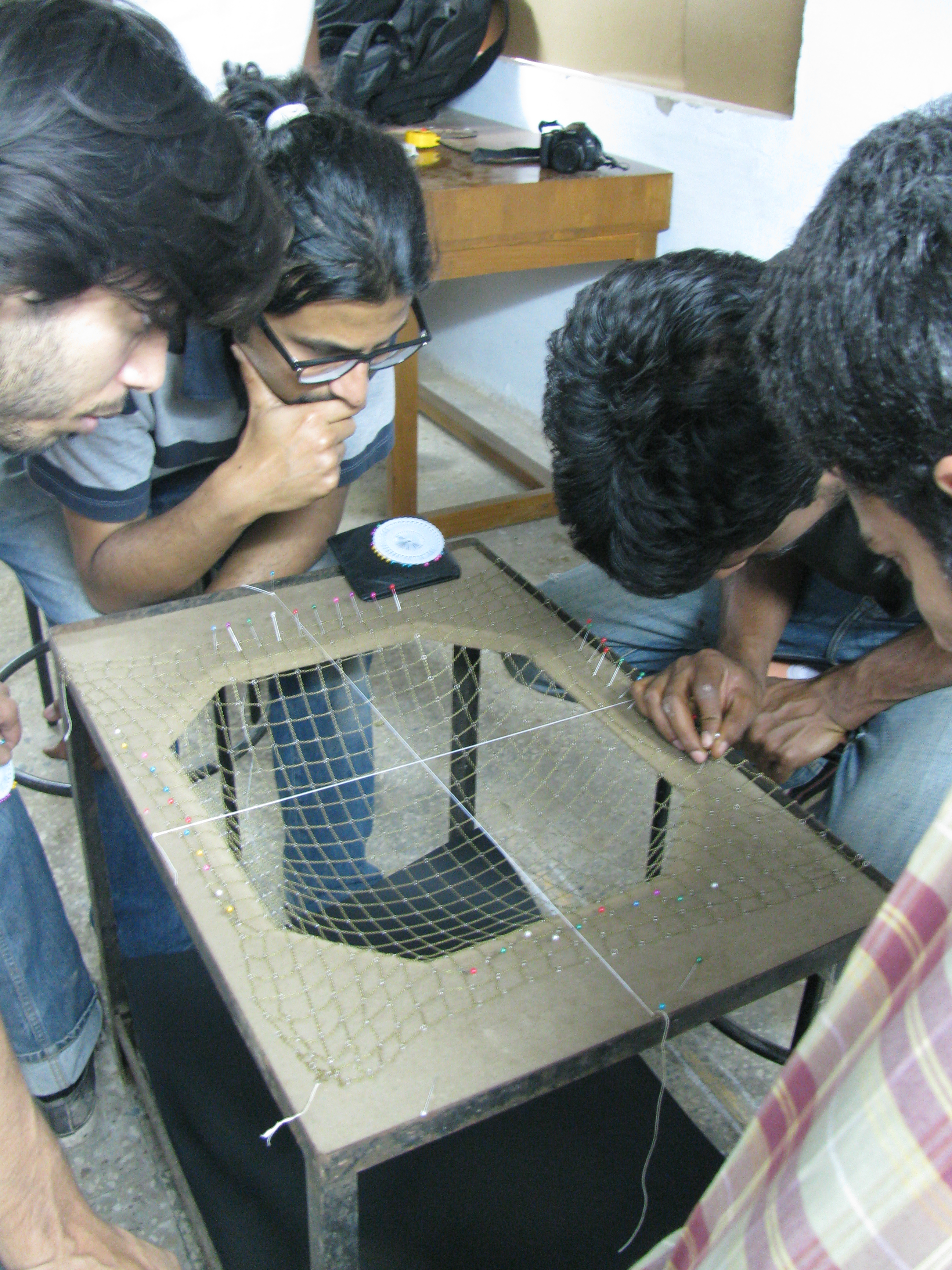 I had gone to this workshop in CEPT, where we met Sankalpa again, and Manu and some other people-Nripal Adhikary from Abari. Over there, we had taken this grid shell workshop with Professor Vasavada. We did the vault chain technique – we manually measured everything, plotted it onto a piece of paper and then did the prototype – a scaled model. Essentially, I really loved that idea, that you could take a strip of Bamboo, tie it in two directions in different axes and just play with it such that it becomes this very flexible material. We started to bring these materials to people in the city and start encouraging them to at least learn about these materials and learn by doing – that was our philosophy. We started doing a lot of workshops with students, to expose them to this idea of architecture done in an alternate manner and learning by, say, tactile experiences.
