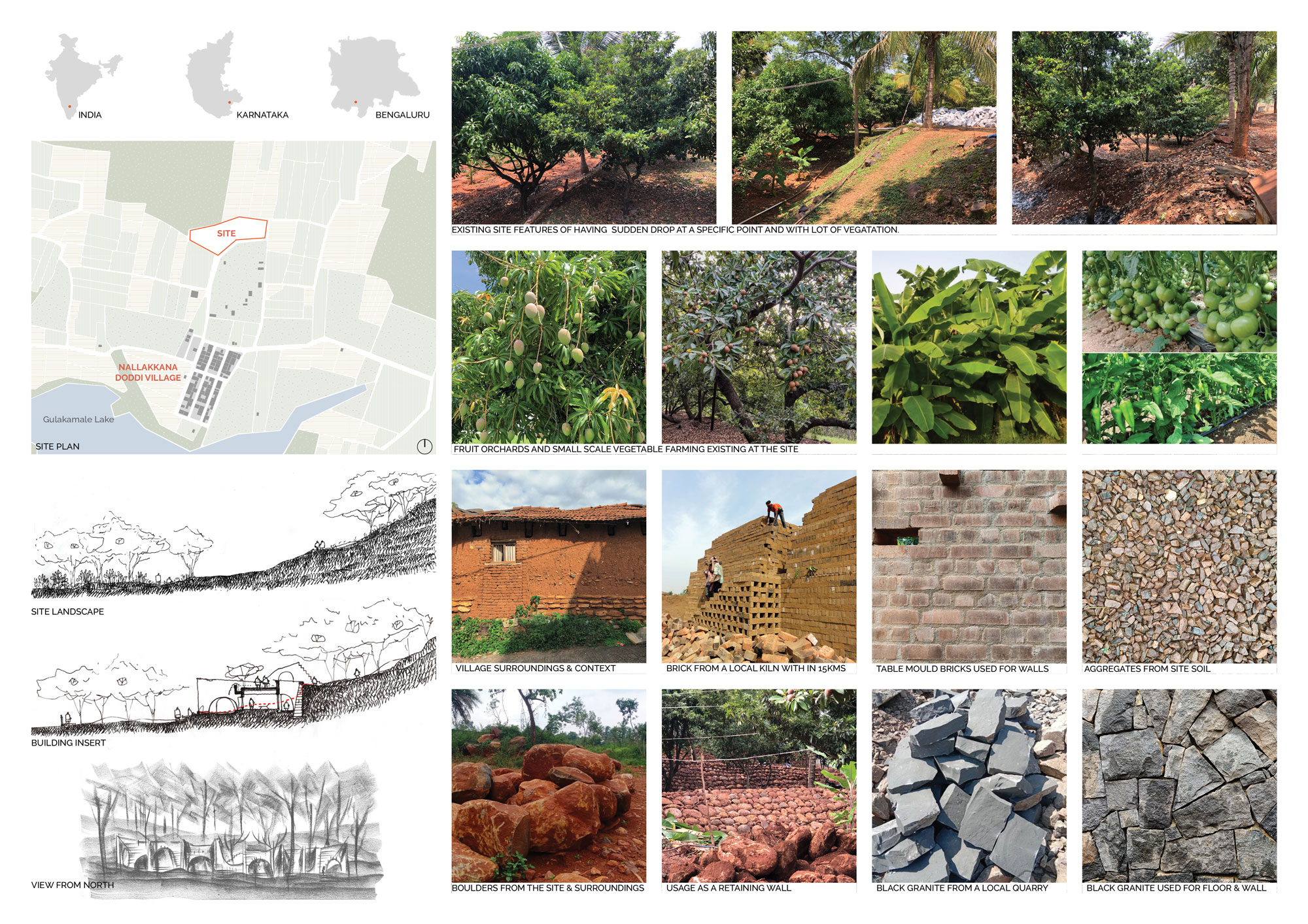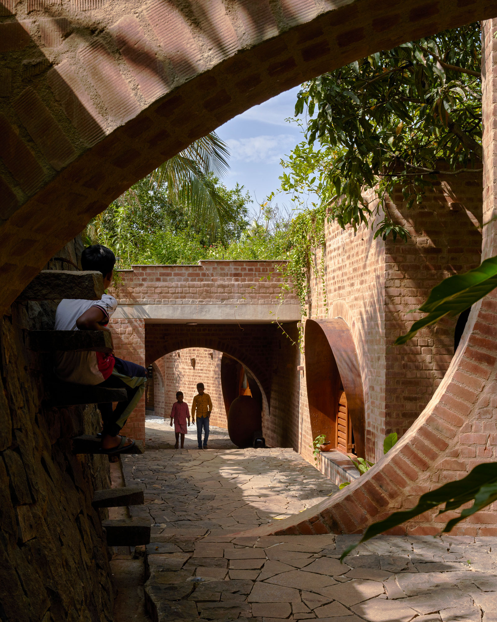 There are many sculptors and potters surrounding Kaggalipura, where the building sits. We thought to include their collaboration into the building rather than having a dead farmhouse which people use only in the weekends. The plan is flexible, and where the built and unbuilt correspond. The same space can be utilised for events.