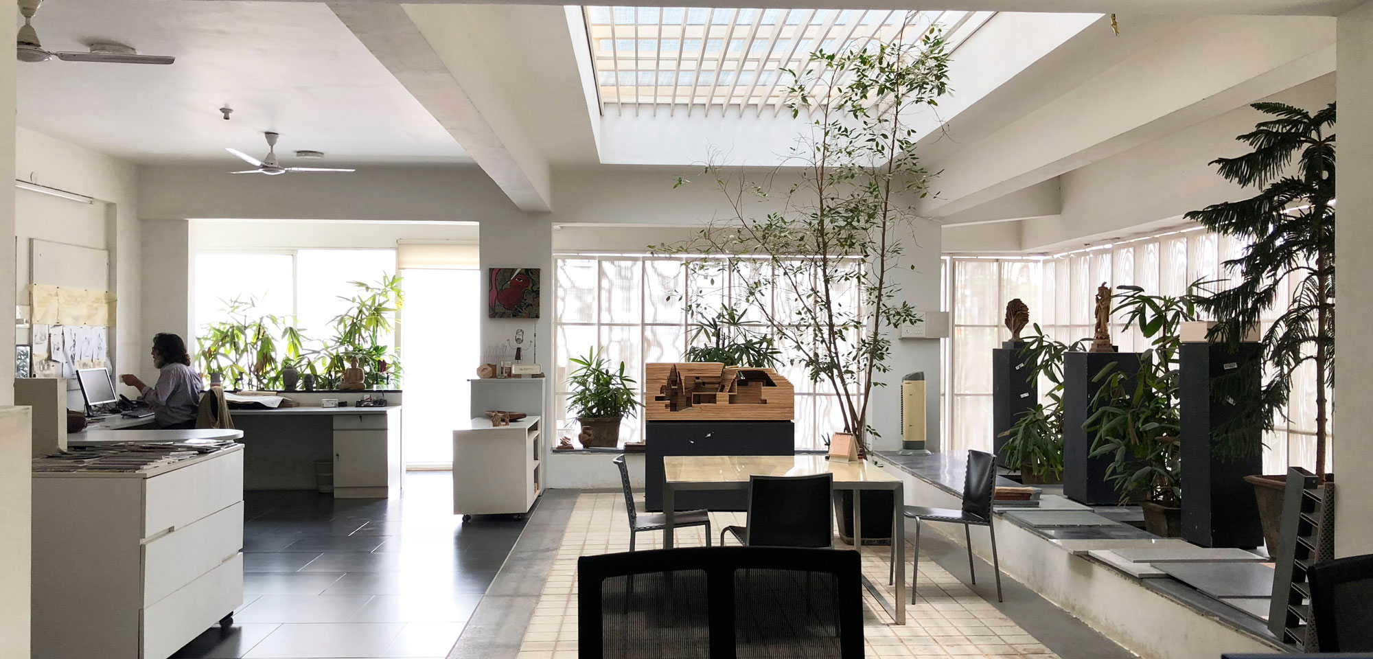 I studied in D Y Patil College of Architecture in Pune […]. During my second year, we had to do a case study of one building or one small-scale house. We met Architect Girish Doshi in Pune, and I saw his studio. […]. It was a little underground, and since he had worked with B V Doshi, and many principles of Sangath reflected here; how you go down, and discover yourself.