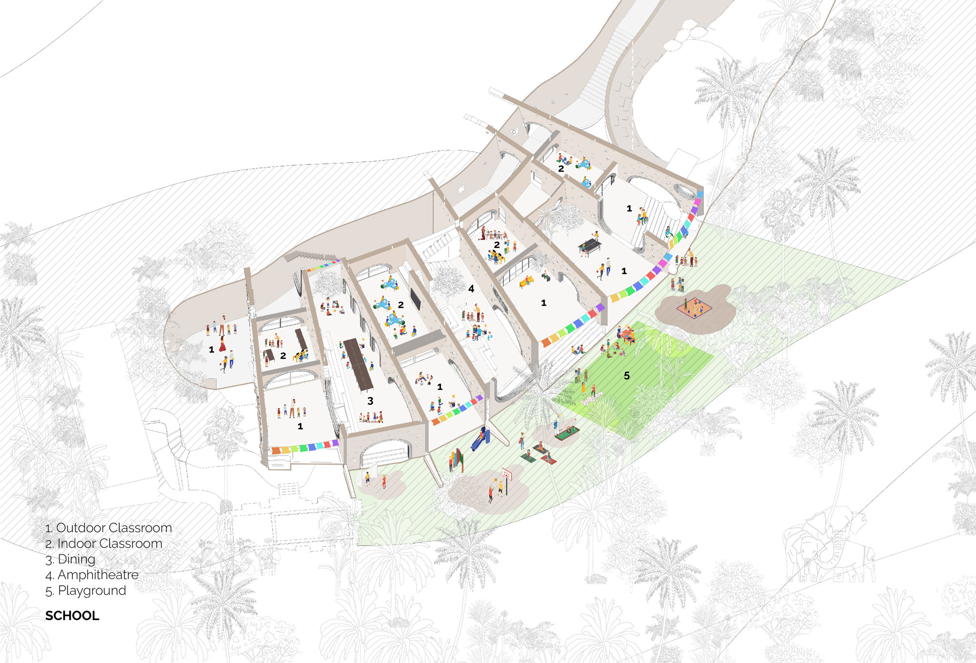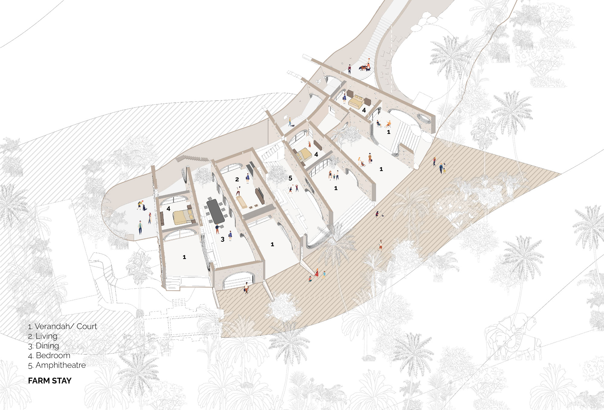 Louis Kahn, he has a very nice article about how you can stretch a brief. I just wanted to stretch this idea of space as a resource, where for example, in the project Subterranean Ruins, we have this planning system of four caves, where it is derived from the existing tree and the terrain, etc. The client came up with the idea of a house, but we slightly stretched the brief; that it need not be just a house, it can house a museum also.