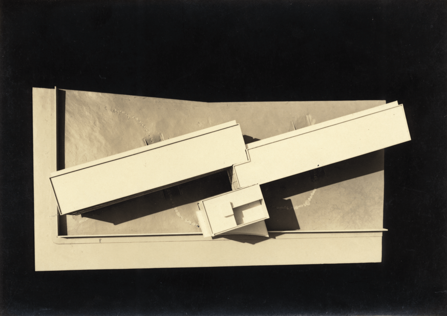 At that point in Japan with the war breaking out, Antonin Raymond’s office did some very basic schematic design iterations. This is an early model photograph of that schematic design (referring to image 07) showing how on a very narrow plot, the building was oriented north-south to take advantage of the prevailing breeze with a node for circulation. Another early model photograph (referring to image 08). All of this material was in the Ashram archives and had never been opened since 1945. So, when Christine and I went to live there and gained the trust of the Ashram, piece by piece, these fragments of information were revealed.