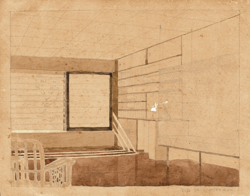 Another photograph of the model (referring to image 10) and what they proposed was a system of louvers that would be cast in place in concrete that would allow the breeze and the light to temper the heat of Pondicherry in the monsoon and in the summer. Interestingly at this point, concrete had never been poured in any building in India. Another perspective view done by Raymond of what the interior of one of these rooms for the Ashram would be (referring to image 11).