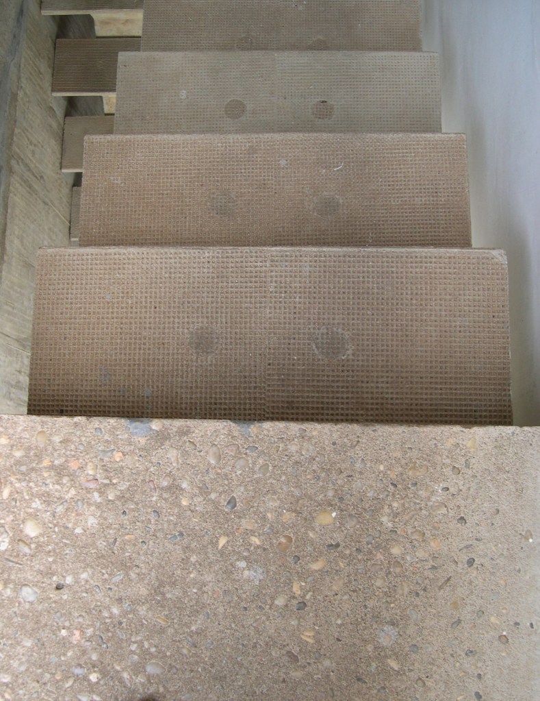 The drains that were cast, for all the rainwater (referring to image 73). The concrete allowing for the soil and waste pipes to be flushed with the surface (referring to image 74). Detail of the laundry stair handrails (referring to image 76). Notice they even embedded a texture on the concrete (referring to image 77) so that people carrying wet laundry, bare feet, in their saris would not slip. Pretty remarkable, given it is the first time the material was being deployed in the country.