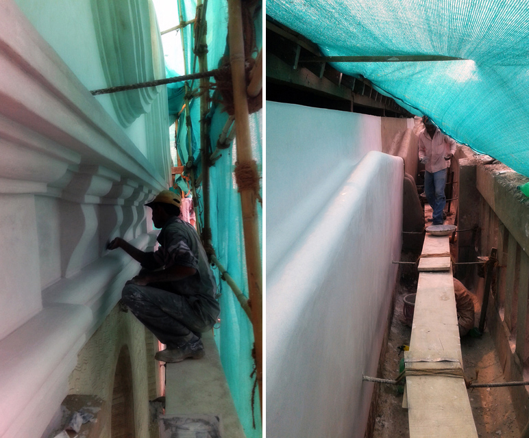 Lime plaster in process